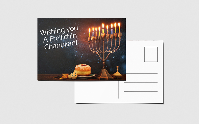 Beautify your (and their!) Chanukah with the A Freilichin Chanukah, vol. 2, folding card and postcards
